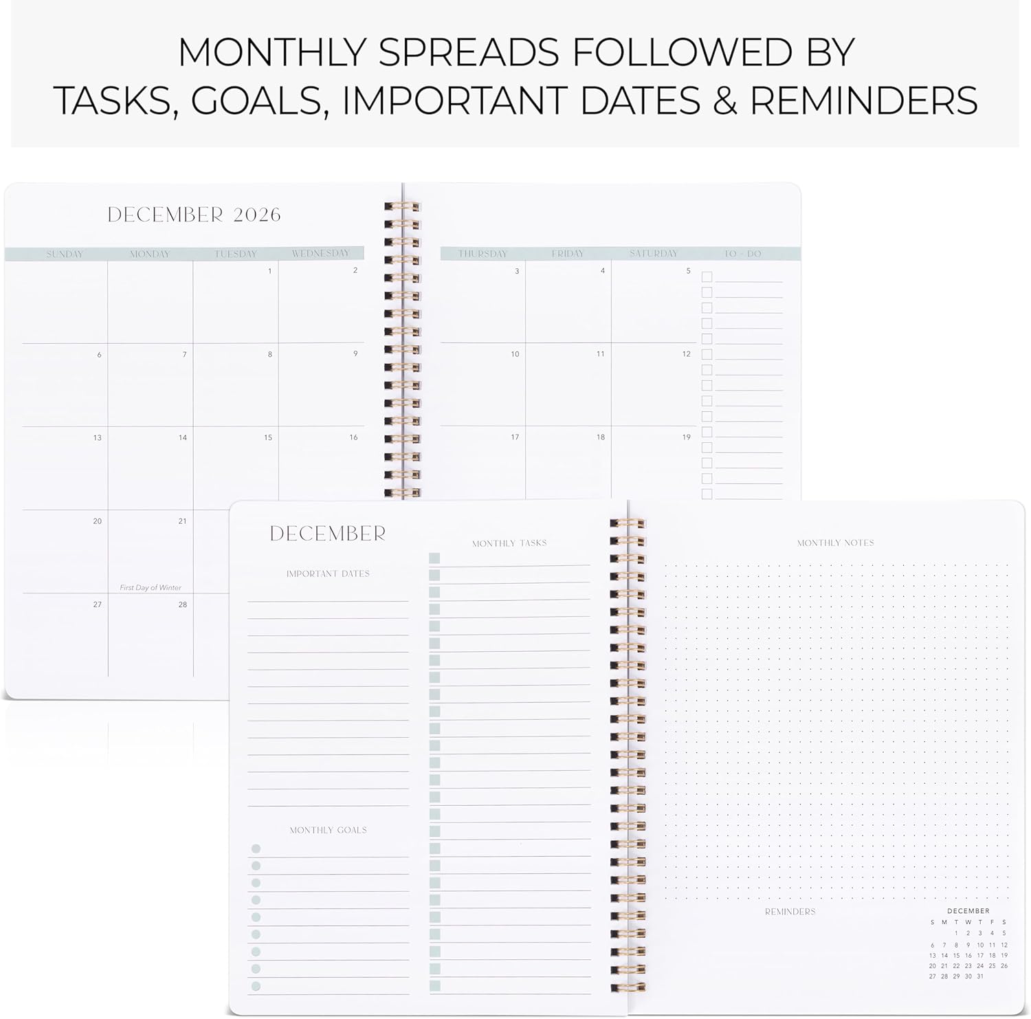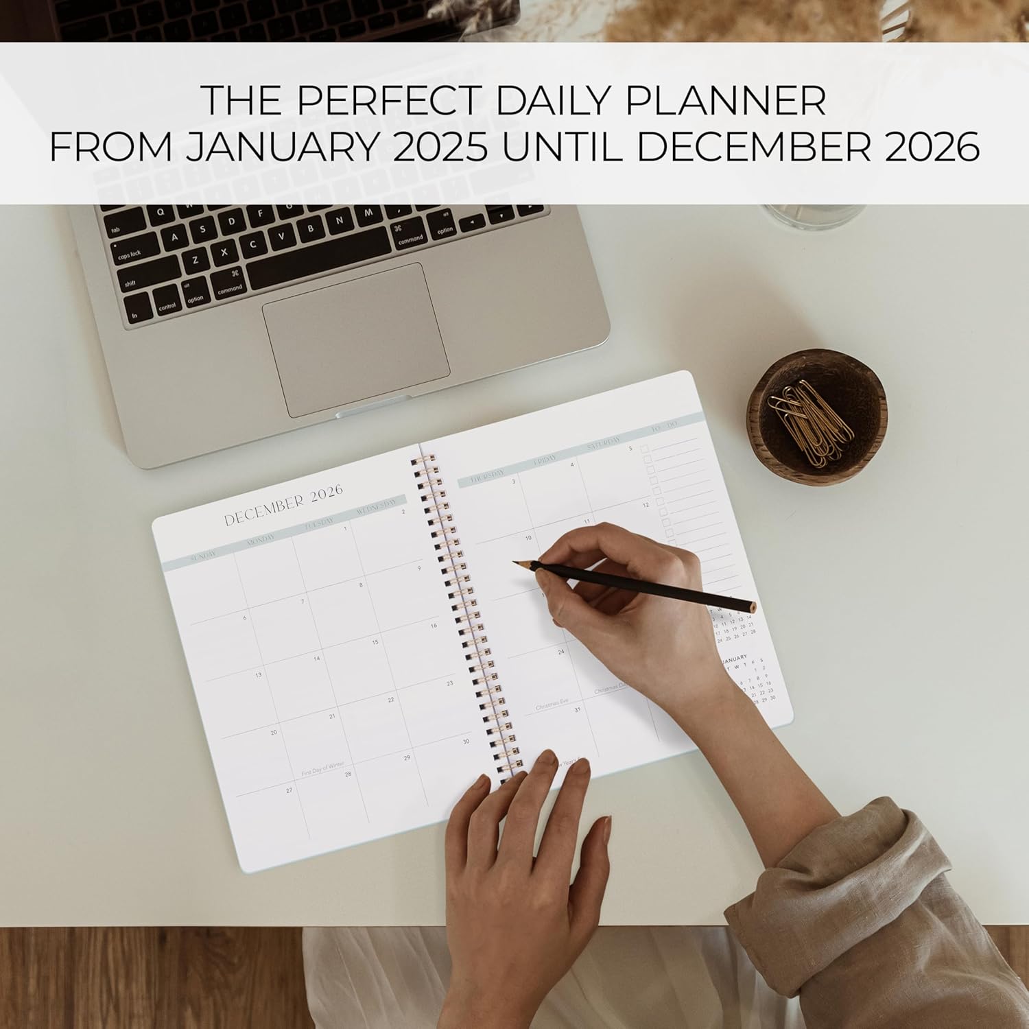 uper Easy To Stay On Top Of Things: Thanks to the straightforward monthly view of the monthly planner 2025- 2026 planning ahead is easy & efficient, making it a breeze for you to keep track of your appointments, birthdays, business meetings, kids’ baseball practice and more – don’t forget to schedule some pampering “me-time” for yourself