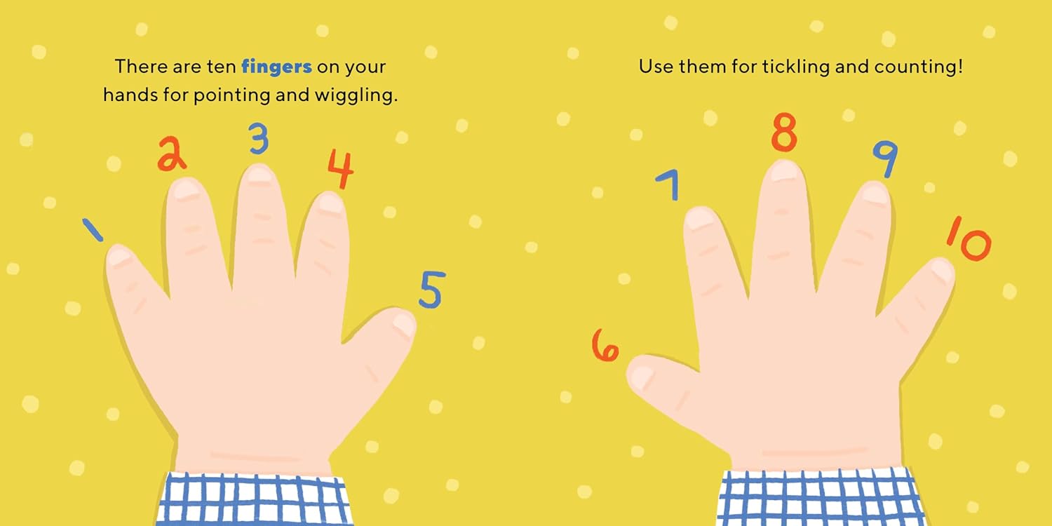 Which body part is that?―Help your child learn to point out their belly button, count their fingers and touch their elbows!