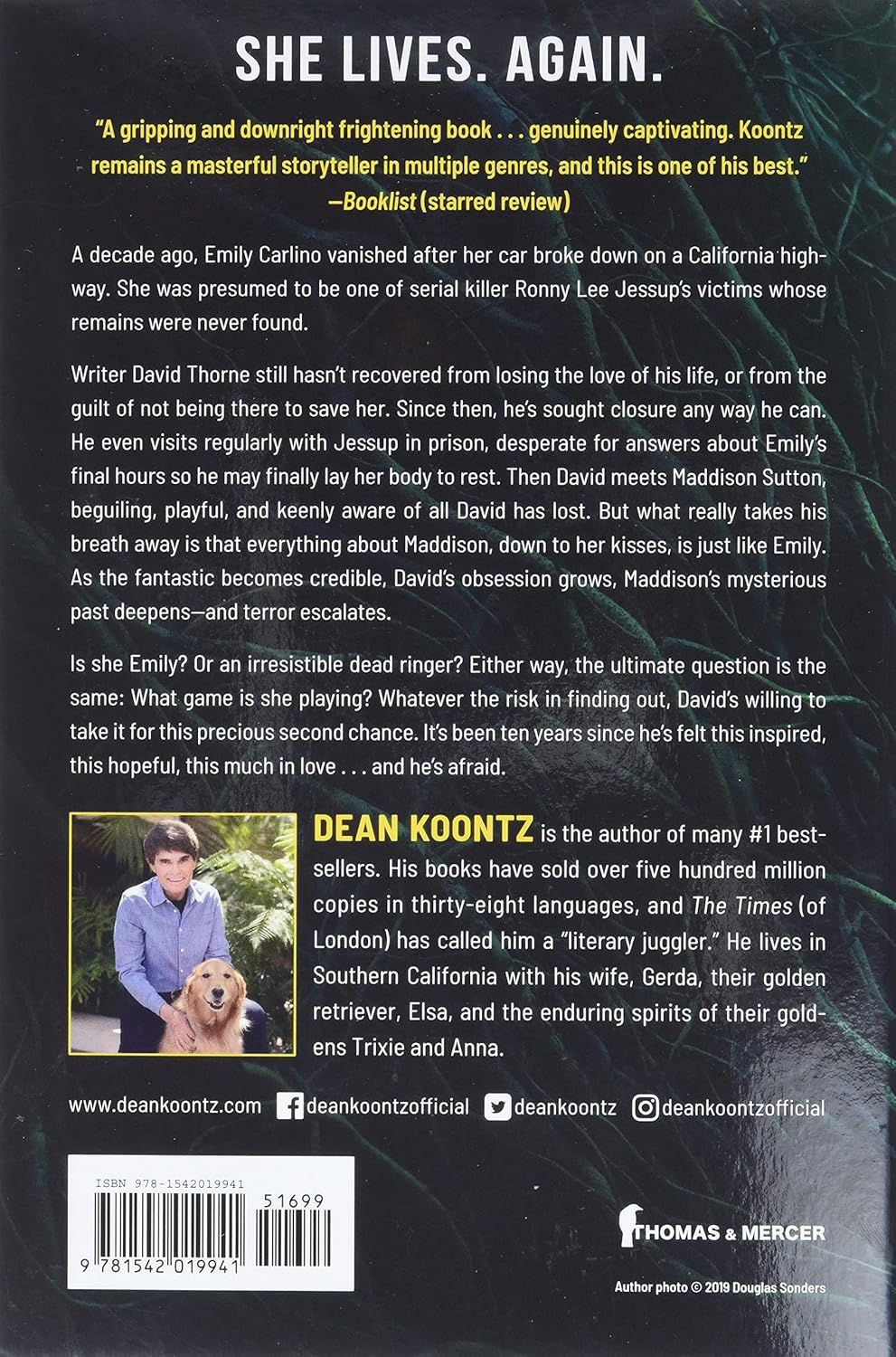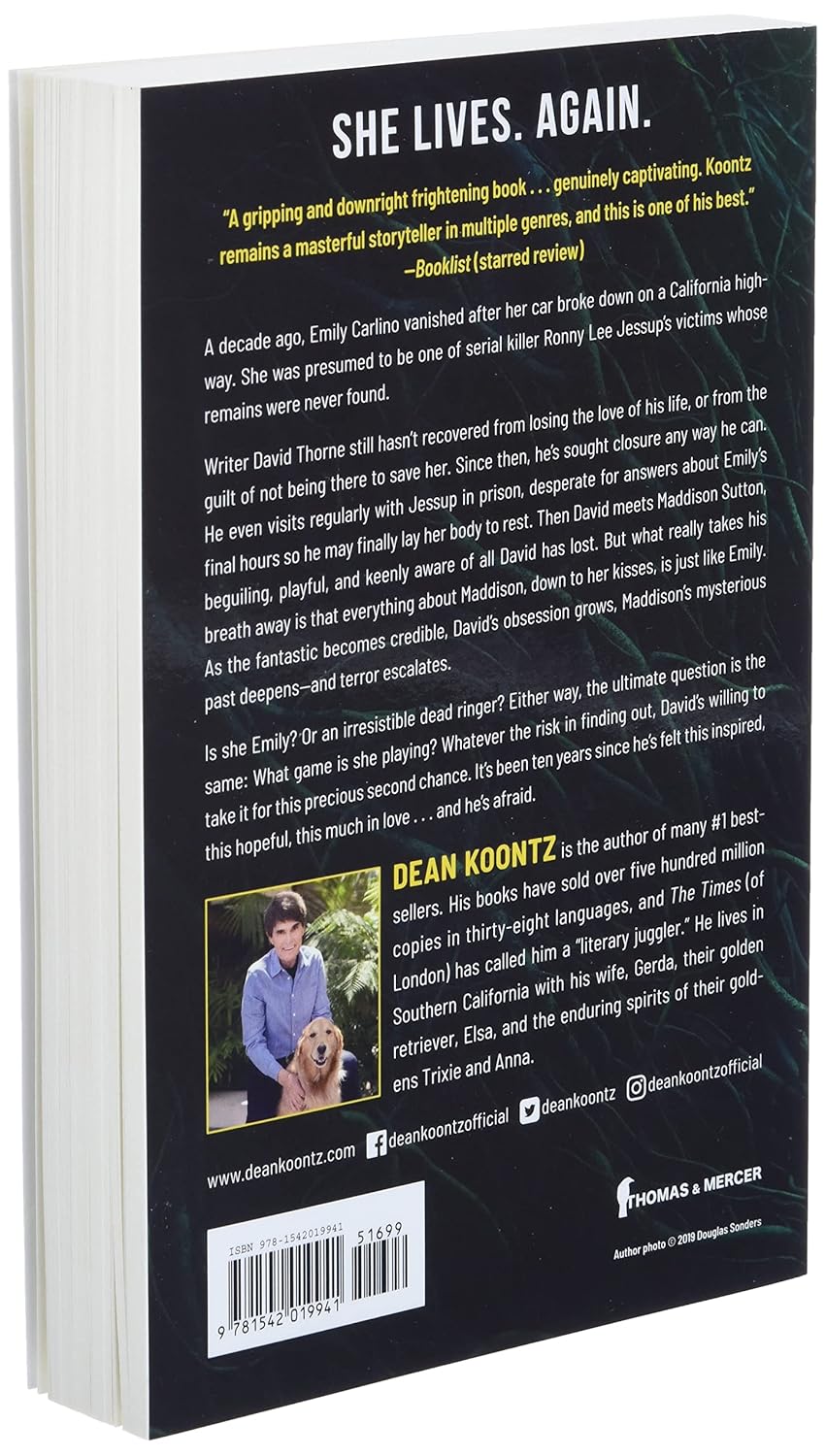 Writer David Thorne still hasn’t recovered from losing the love of his life, or from the guilt of not being there to save her. Since then, he’s sought closure any way he can. He even visits regularly with Jessup in prison, desperate for answers about Emily’s final hours so he may finally lay her body to rest. Then David meets Maddison Sutton, beguiling, playful, and keenly aware of all David has lost. But what really takes his breath away is that everything about Maddison, down to her kisses, is just like Emily. As the fantastic becomes credible, David’s obsession grows, Maddison’s mysterious past deepens―and terror escalates.