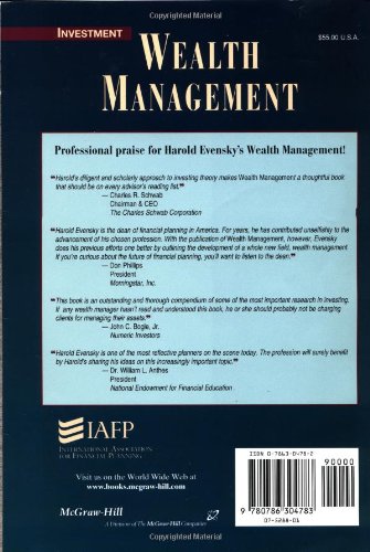 “Harold’s diligent and scholarly approach to investing theory makes Wealth Management a thoughtful book that should be on every advisor’s reading list.”–Charles R. Schwab, Chairman & CEO, The Charles Schwab Corporation. Wealth Management outlines the current state-of-the-art in financial planning, and describes respected financial planning speaker and author Harold Evensky’s effective, optimal asset allocation policy that is designed to account for each client’s unique goals and constraints. It provides you with concise yet thorough information on current investment theories, along with detailed reference for further study.