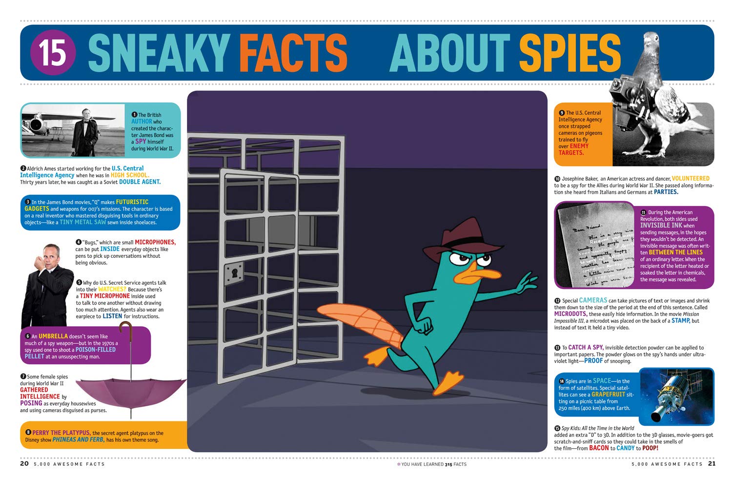 Lively and information-packed, this book is literally busting its covers with fascinating, fun-tastic facts on super, sensational topics that kids love. Who knew that there were so many sweet things to learn about chocolate or that a dozen delicious details about peanut butter would show up on a page with a few splotches of jelly to whet our appetites? Keep turning and a terrifyingly toothy shark tells you all about himself, while other spreads lay out tons of tips on toys and games, mysteries of history, robots and reptiles, sports and spies, wacky words, and so much more! A visual feast of colorful photographs surrounded by swirling, tipping, expanding, and climbing bits of information in a high-energy design, this book will satisfy both the casual browser and the truly fact obsessed.