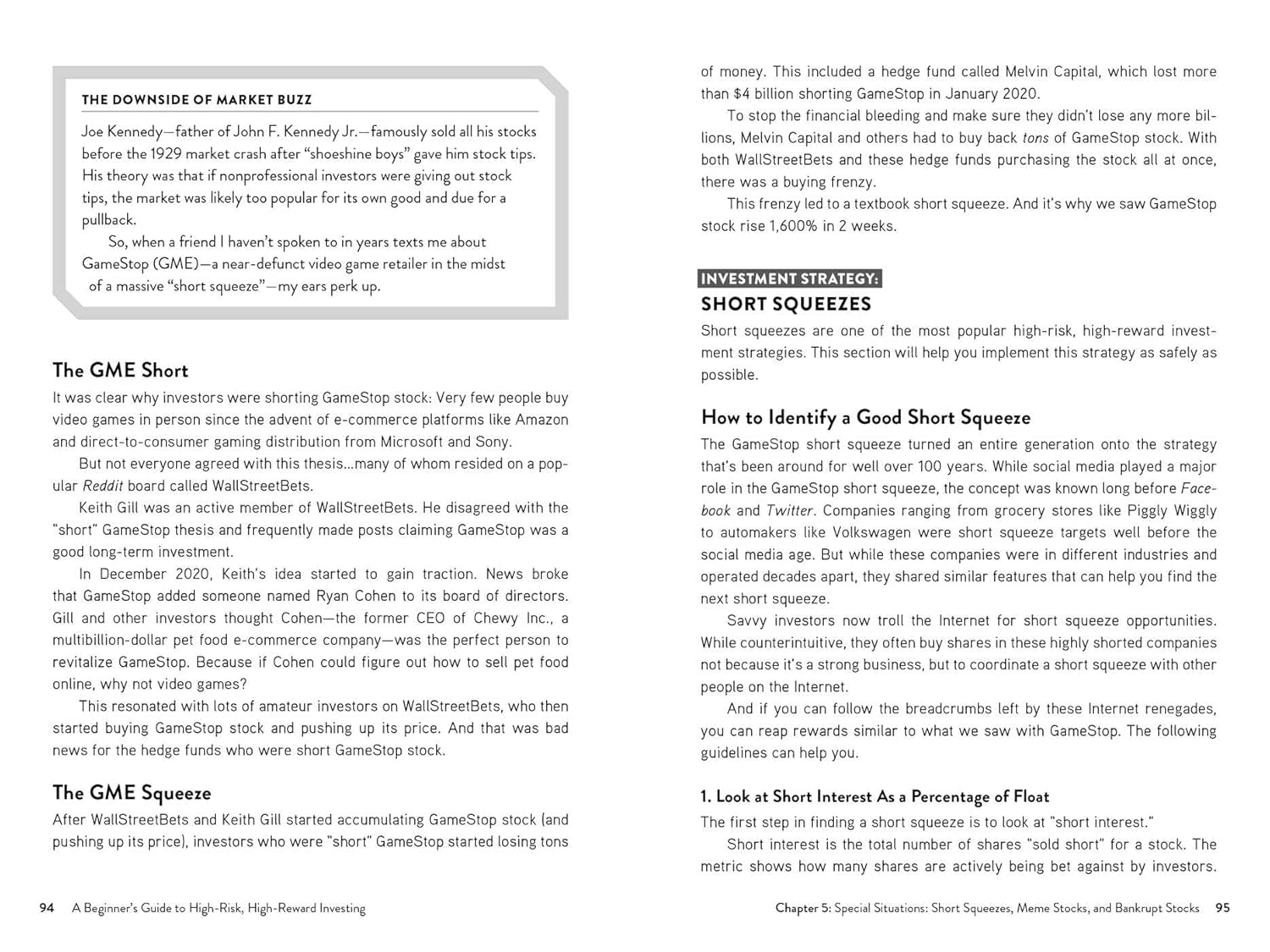 A Beginner’s Guide to High-Risk, High-Reward Investing can help you make sense of trends, from short selling to cryptocurrency and “meme stock,” breaking down the buzzwords to give you hard facts about the opportunities and risks of fringe investment strategies. With advice from expert Robert Ross, this easy-to-follow investing guide gives you everything you need to determine which high-risk, high-reward investment strategies are the best fit for your portfolio.
