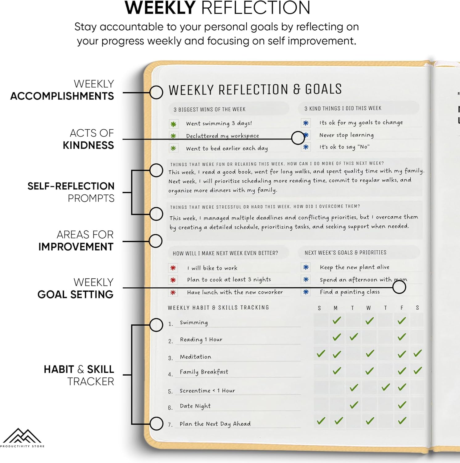 ✅ List All the Good Things That Happen Each Day & Prepare for the Next Day: Use our daily journal to celebrate your biggest wins and things you are most excited about the next day.