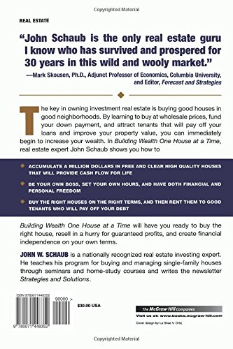 Nationally known real estate expert John Schaub learned his craft in the best way possible–on the job, and through every kind of market. Over three decades, he learned to bank consistent profits as he built an impressive real estate mini-empire.Building Wealth One House at a Time reveals how virtually anyone can accumulate one million dollars worth of houses debtfree and earn a steady cash flow for life.