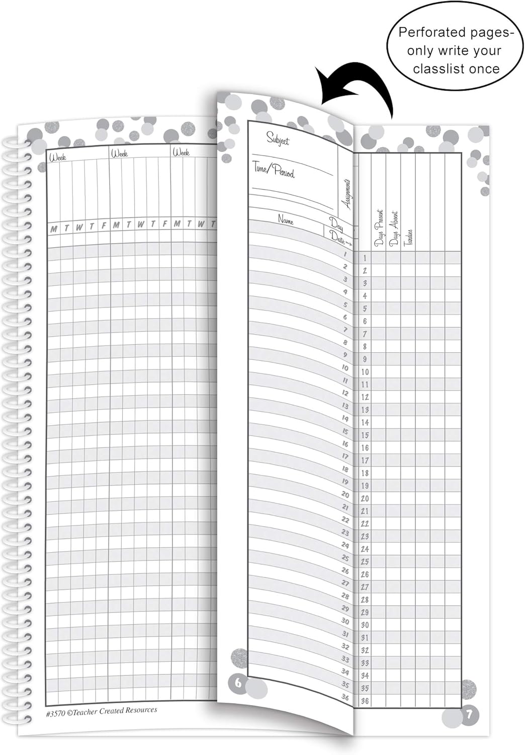 Add a little fun to your day with this colorful confetti-themed record book. Plenty of space is provided to record grades for assignments, tests, attendance, or other notations. Each two-page spread allows enough space for 10 weeks worth of record keeping. Convenient, perforated pages allow for easy management of larger classes. An easy-to-use grading chart is also provided. 8-1/2 x 11″. spiral-bound.