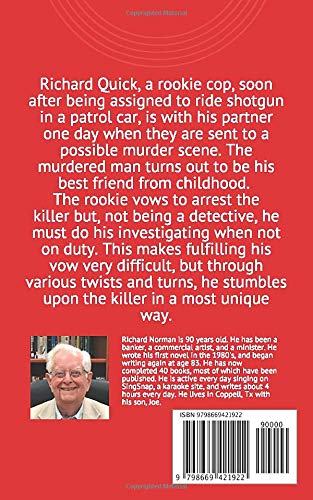 Richard Quick is a rookie cop who’s best friend, another cop, gets murdered. He vows to find the killer himself, however, he must do this on his off hours. This makes it very difficult for him, but eventually, he fulfills his vow in a most unusual way.