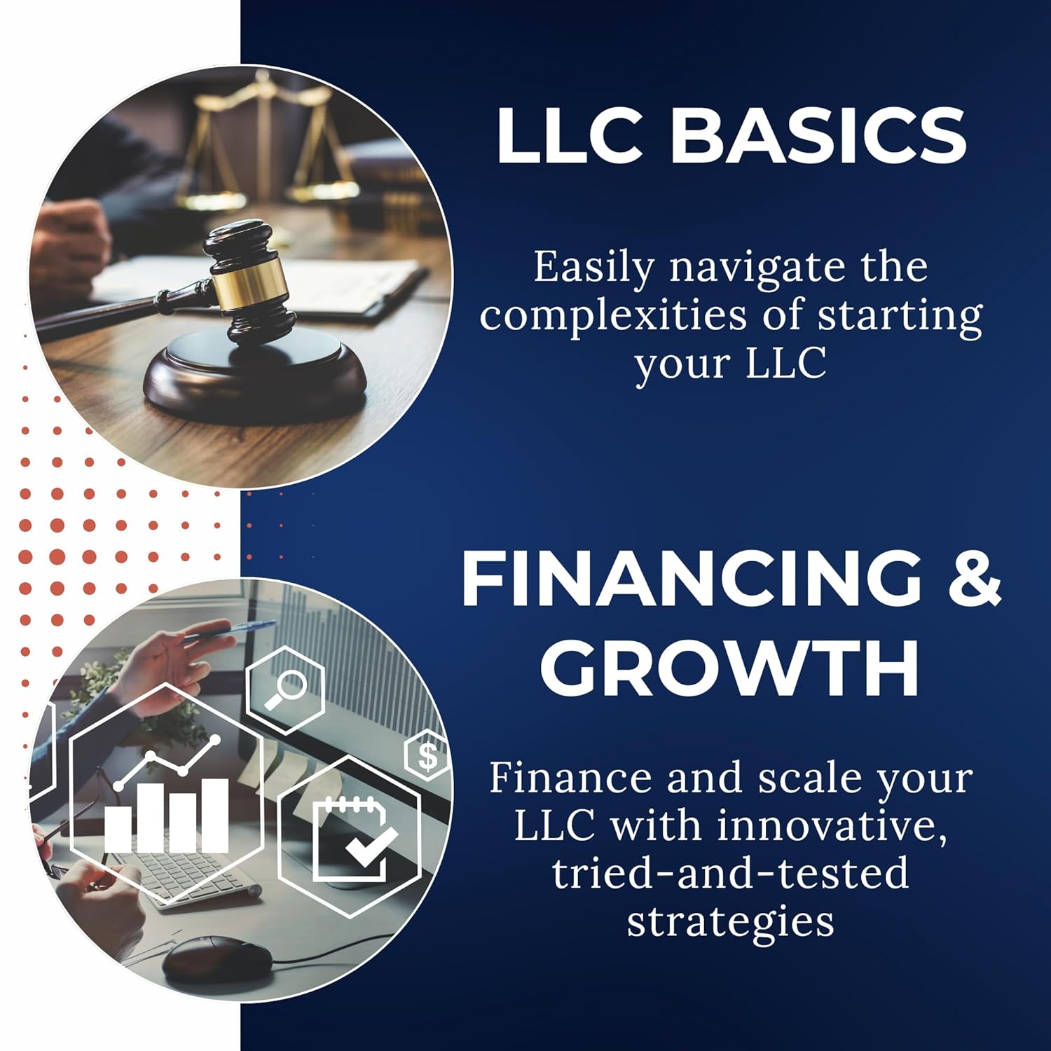 LLC Basics Unveiled: Understand the core principles, types, and structures of an LLC, setting a strong foundation for your business.Step-By-Step Formation Guide: Navigate the complexities of setting up your LLC with practical, actionable steps.Legal and Compliance Strategies: Learn to effortlessly manage legal requirements and stay compliant, avoiding potential pitfalls.Effective Risk Management: Identify and mitigate business risks, ensuring the longevity and health of your LLC.Strategies for Growth and Financing: Unlock potential growth strategies and learn about financing options to expand your business.Operational Mastery: From workforce management to day-to-day operations, gain insights to run your LLC efficiently.Exit Strategies Planning: Understand when and how to plan exit strategies, maximizing your investments.Real-World Examples and Case Studies: Learn from practical examples and apply these lessons to your business scenario.Interactive Exercises: Engage with hands-on exercises to reinforce learning and application.Future-Proofing Your LLC: Stay ahead with strategies that adapt to changing business landscapes.