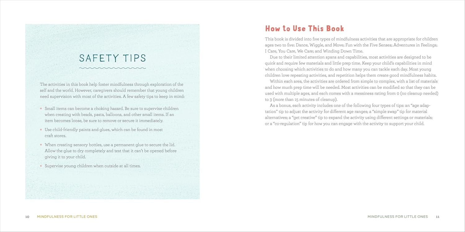 Learn with fun―Dance, wiggle, create, and explore with playful activities that engage the senses and nurture positive emotions, empathy, and self-awareness as mindfulness for kids is instilled.Not just for kids―A co-regulation guide helps parents and caregivers model mindfulness, even when little ones act out.Mindful organization―Activities are grouped by themes that support different aspects of mindfulness for kids, from awareness of the body and emotions to cultivating joy and empathy for others.