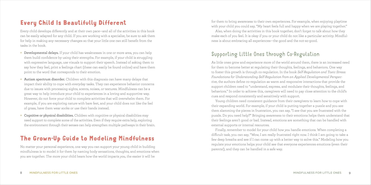 Your toddler or preschooler lives in the moment, but they can still feel overwhelmed. Mindfulness for Little Ones helps children ages 2 through 5 move toward healthy coping skills and behaviors with playful, developmentally appropriate activities. Designed to tap into your child’s innate curiosity and boundless energy, these fun activities promote the repetition, sensory play, and positive emotions that develop mindfulness for kids.