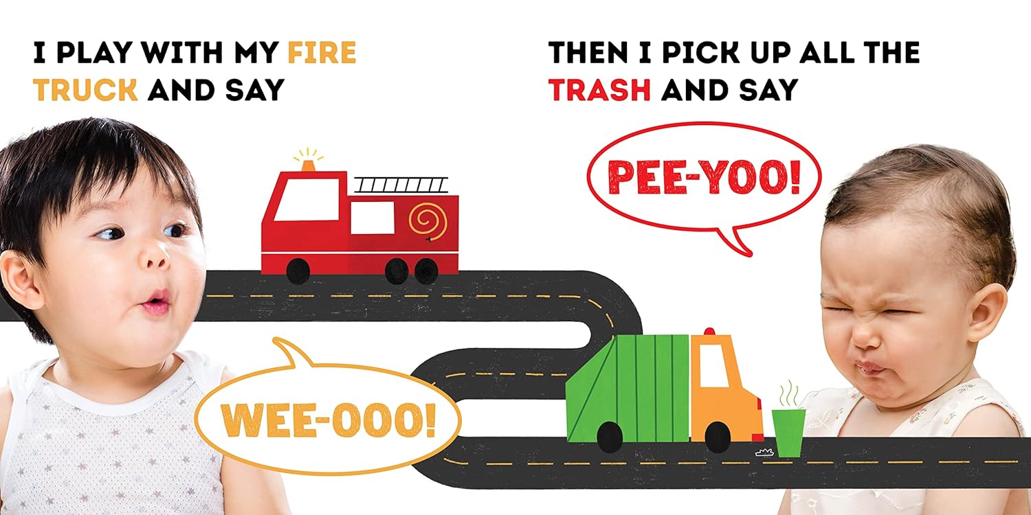 Simple, exciting sounds that are easy for little ones to imitate, and can be used to build bigger wordsRhythm and rhyme to encourage repetition and help keep babies engaged, even before they understand the textReal photographs that model correct mouth positions and support social emotional learningColorful illustrations of cars, trucks, trains, and other favorite things that go!