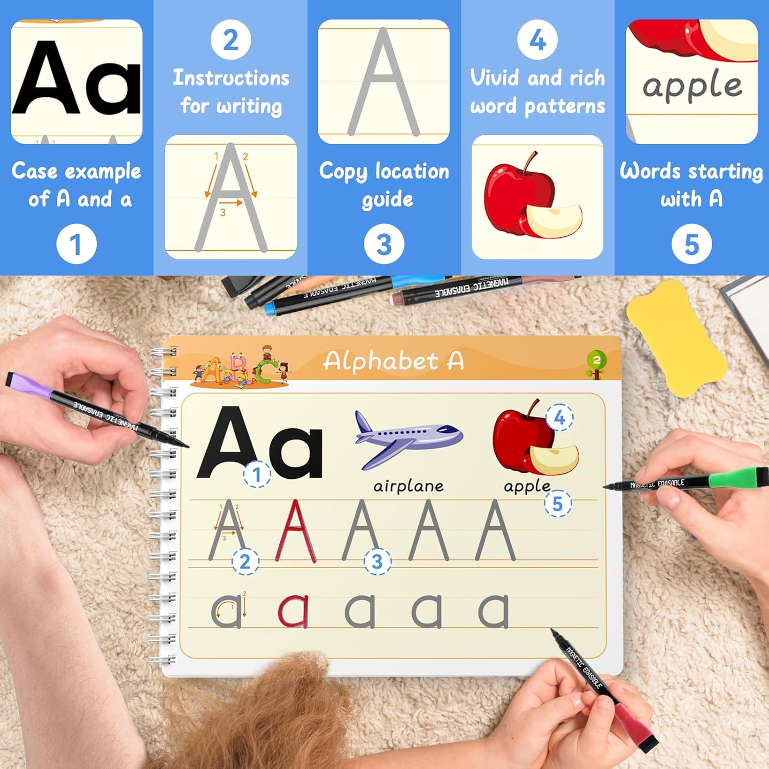 ✍️Fun & Easy Educational Toys: Our preschool workbook come with a nice gift box. Contains 64 pages of preschool learning activity, 12 markers and 2 eraser. This preschool handwriting practice book is multi-functional, allowing kids to develop fine motor skills, communication, verbal and problem-solving skills, and improve basic hand-eye coordination, imagination, and visual perception. Perfect for toddler learning activities for toddlers. Also is useful as a busy or quiet book.