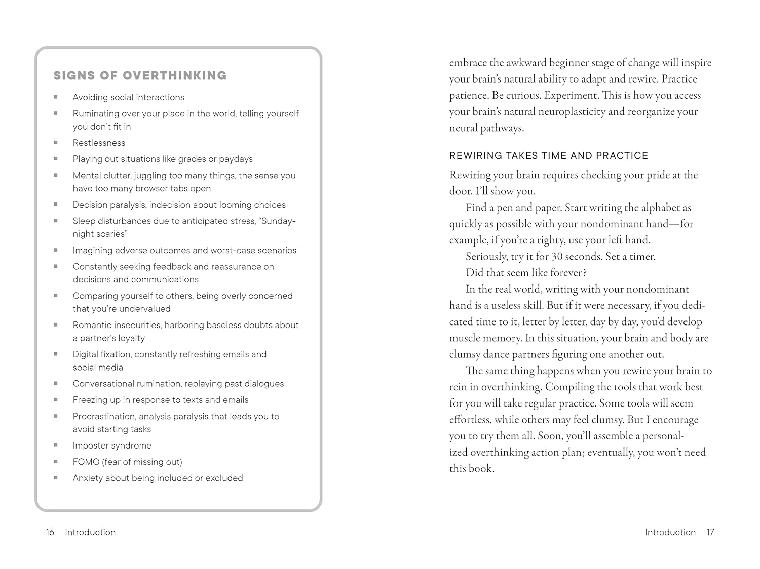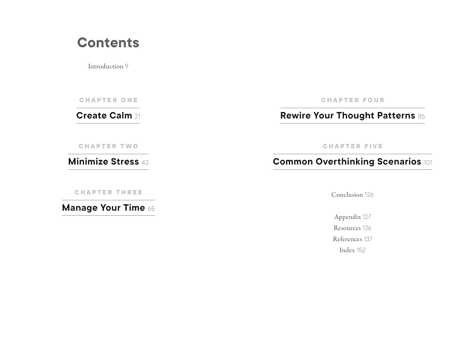 Proven techniques to quiet your mind and stop overthinking in its tracks.Strategies to manage stress and anxiety, allowing you to live a more balanced and fulfilling life.Skills to help you stay focused, present, and mindful during stressful situations. Tips for building resilience and fostering positive thinking.Practical ways to stop agonizing over the past and worrying about the future.Real-life examples of common scenarios with tips on how to work your way through them without being caught in an overthinking loop.