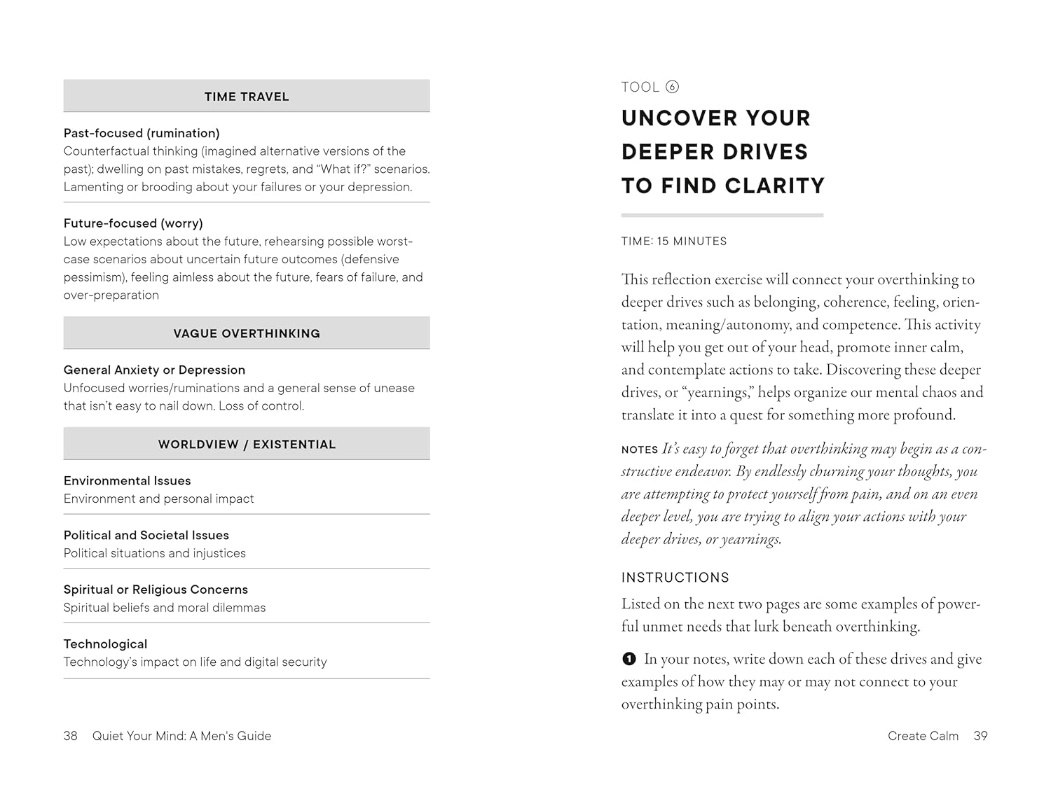 Overthinking creates unproductive, repetitive thoughts, often leading to anxiety, stress, and depression. Combined with social norms dictating that men stay “strong and silent” in the face of their internal struggles, overthinking can have other consequences for men as well, including irritability, aggression, impulsivity, and risk-taking behaviors. In this guidebook, author Jett Stone, PhD, a seasoned clinical psychologist and organizational consultant with years of experience working with men, offers practical, actionable strategies to help you take back your life from the cycle of overthinking and break free from unhelpful mental loops and cycles of rumination. Filled with valuable insights and practical skills that you can apply immediately, this book will help you learn to identify and challenge negative thought patterns, cultivate a positive mindset, and develop self-confidence.