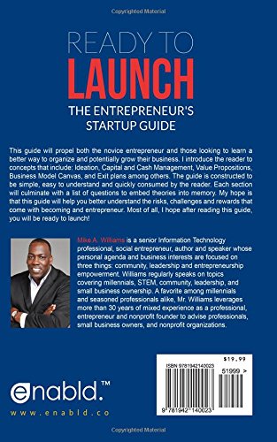 This guide will propel both the novice entrepreneur and those looking to learn a better way to organize and potentially grow their business. I introduce the reader to concepts that include: Ideation, Capital and Cash Management, Value Proposition, Business Model Canvas, and Exit plans among others. The guide is constructed to be simple, easy to understand and quickly consumed by the reader. Each section will culminate with a list of questions to embed theories into memory. My hope is that his guide will help you better understand the risks, challenges and rewards that come with becoming and entrepreneur. Most of all, I hope after reading this guide, you will be ready to launch!