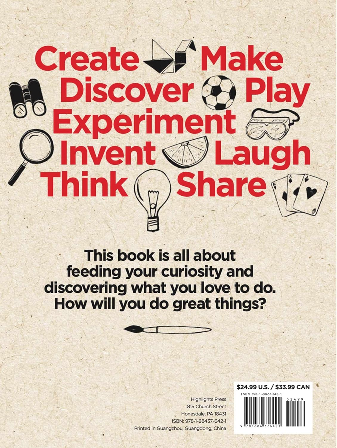 The ultimate boredom buster! From the brand behind America’s #1 most-read children’s magazine, the Highlights Book of Things to Do is the essential book of pure creativity and inspiration, filled with over 500 screen-free things to do with kids.