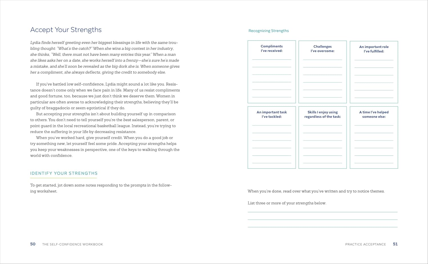 From facing your fears to practicing acceptance and self-compassion, The Self-Confidence Workbook offers practical and effective strategies to help you bring out your best self. You’ll learn how to guide yourself through having self-confidence in relationships, work, and health. With a goal-oriented approach, these proven strategies teach you to silence the self-critic within and help guide you toward living your best life with confidence.