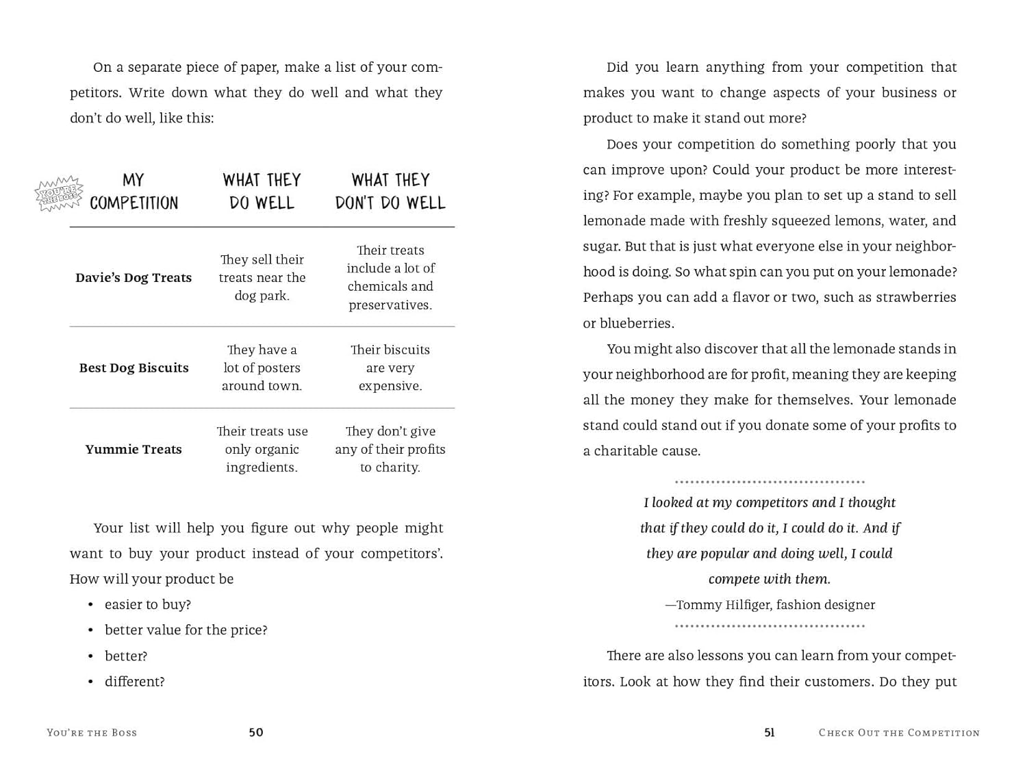 You’re never too young to start a business. Whether you want to launch a babysitting service, run a lemonade stand, sell crafts online—or don’t even know what business to start—You’re the Boss is here to help. In this book, you’ll learn how to figure out which business is right for you, find your ideal customers, manage the competition, calculate costs and profits, pitch your ideas, and so much more.