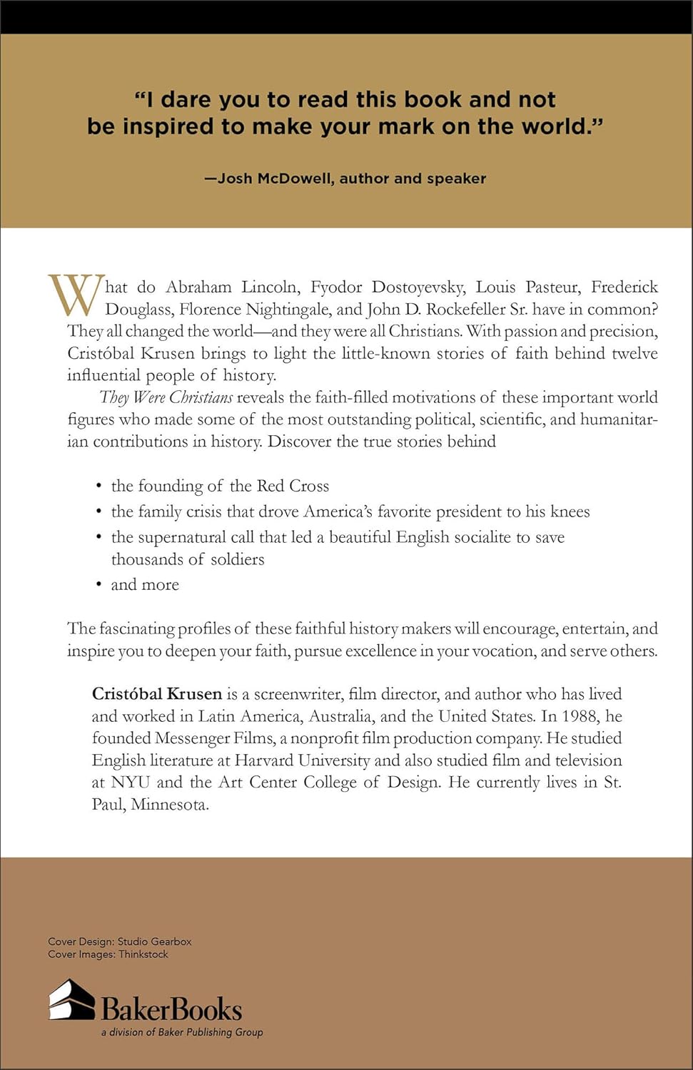 They Were Christians reveals the faith-filled motivations behind some of the most outstanding political, scientific, and humanitarian contributions of history. From the founding of the Red Cross to the family crisis that drove America’s favorite president to his knees and cracked his religious skepticism, the fascinating stories of these faithful history-makers will inspire, encourage, and entertain readers of history and biography.