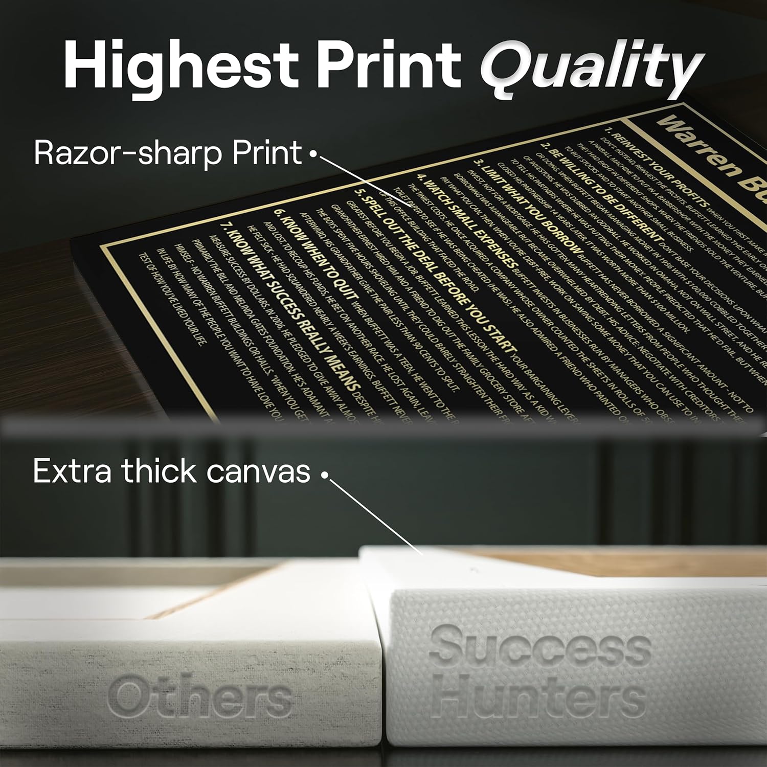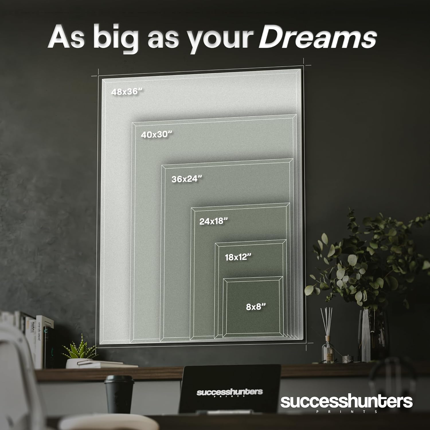 Lifetime Warranty – Success Hunters Prints are all set and ready to ship these exclusive canvas arts for entrepreneurs straight to you. Remember you get a 100% satisfaction, lifetime warranty, so this decision is Risk-Free! Join our hub of motivated, inspired, successful peeps, and select your canvas art now >>