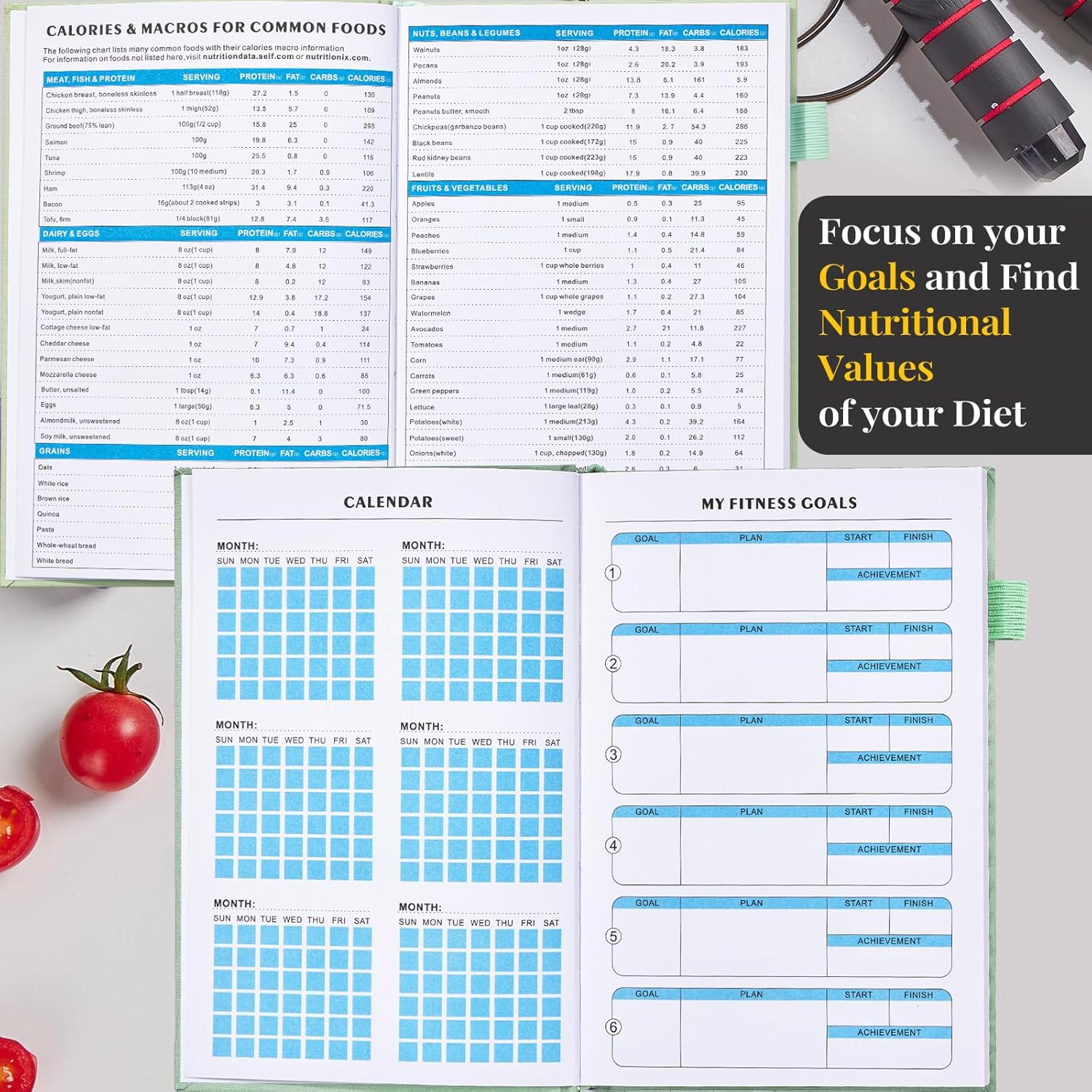 Set Goals and Stay Motivated: Use this weight loss journal to set achievable goals and track your progress. Record your starting weight, measurements, and body fat percentage, and update them regularly to monitor your progress towards your weight loss goals. Write down your goals before start with this nutrition and workout tracker journal to keep pushing towards your goals.