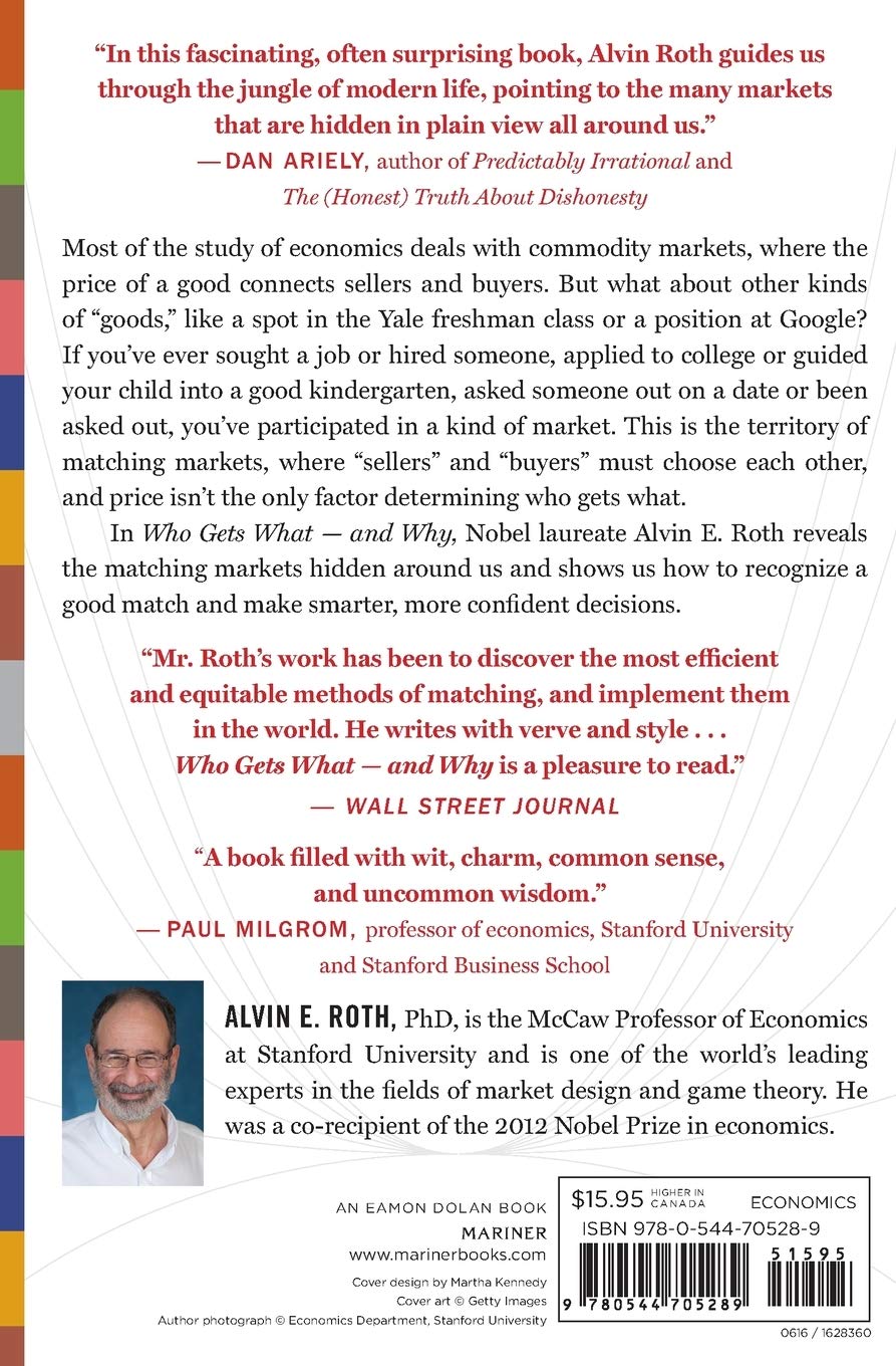 “Mr. Roth’s work has been to discover the most efficient and equitable methods of matching, and implement them in the world. He writes with verve and style . . . Who Gets What—and Why is a pleasure to read.” — Wall Street Journal